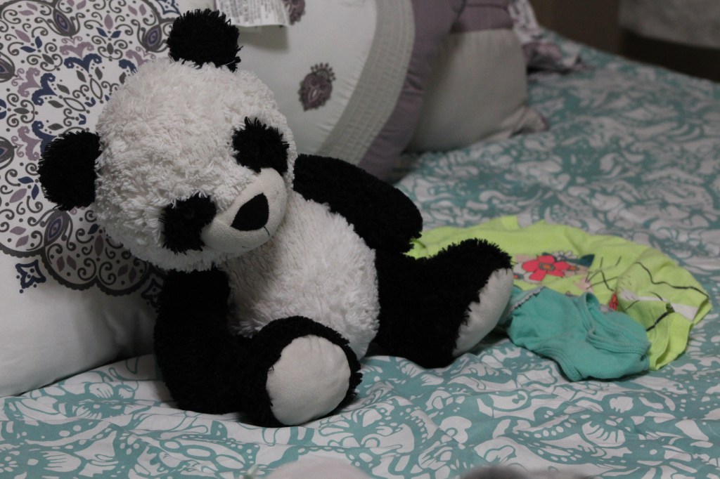 Meet Mister Bear. Pronounced “Mist-uh Bay-yuh”. He’s been a staple of our household for approximately 4 years. Like a loyal teddy bear, he sleeps with us, occasionally eats dinner with us, and has his very own wardrobe which consists of “sleeping panties and a t-shirt”. Yes, I know he has a male prefix; I don’t make the rules around here. Clearly. You see, Mister Bear is my Munchkin’s lovey. In case you haven’t figured that out. And when she’s not home, it’s my job to wash his clothes and make sure he is happy. He’s an integral part of this family. …one time, I forgot to bring him on our road trip. Cue the mom tears. I felt so bad. My mini was devastated and the look of ‘HOW COULD YOU?!’ still haunt me. Not even joking right now. We’ve all only barely recovered from such a traumatic experience.