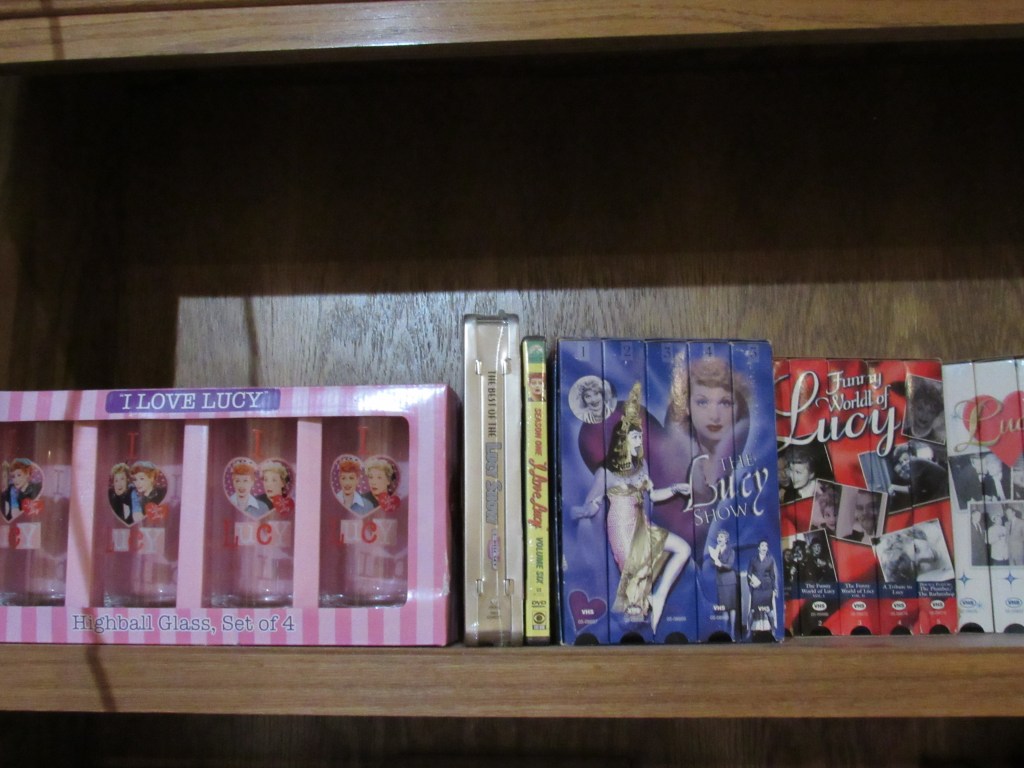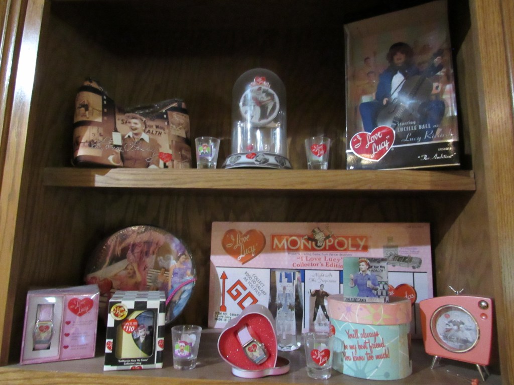 Thankfully, my family really encouraged my collecting habits of all things I Love Lucy. Presently I own posters, photos, glassware, trinkets, movies: both VHS and DVD, and any other memorabilia you can think of. I have it all. The few photos I have included here are but a minimal illustration of the huge totes and areas in my home showcasing how much I love Lucy.