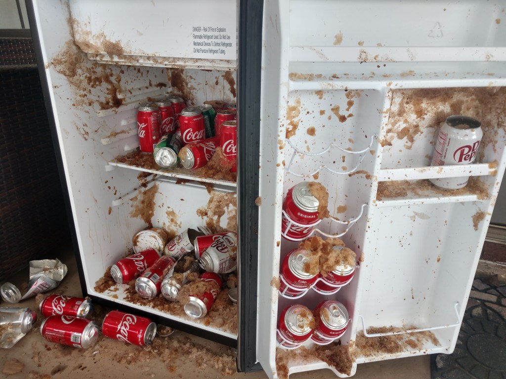 Lastly, it took a few too many days for us to realize the noises originating outside were not from birds hitting the windows but instead from an explosion of soda cans. Apparently the mini fridge was not insulated. This must be how the local 7-11 makes slushies. Now you know.