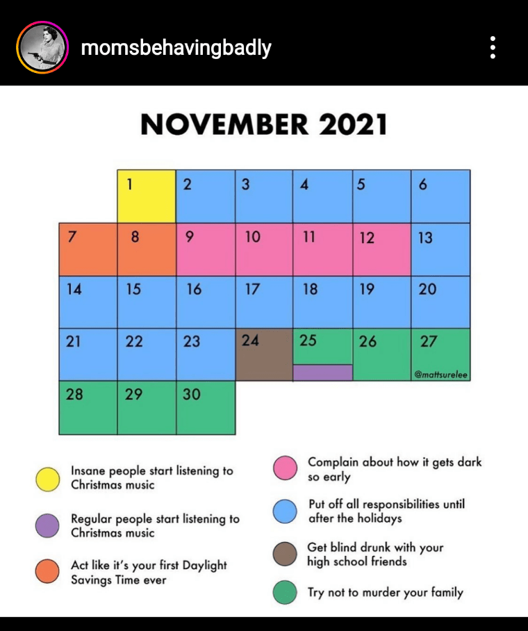 And if this isn’t enough to make you laugh, then you’re beyond help. Mini, along with her classmates, was instructed to bring bite-sized pieces of things to the class’s Thanksgiving feast. Parents were told to choose 3-4 items, then you would be told which of your choices to bring to school. Some followed the instructions, others not so much. When I positively told mini what she (I) had been assigned, her disdain and palpable disbelief was comical only to me. Days later, she still sounds upset whilst I giggle.