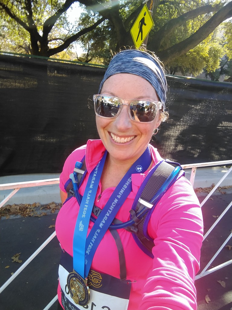 So here’s the ugly. Because I spent the first almost half of the race running faster than I had trained for, miles 6-11 were brutal. The walking increased, even though I was still mostly holding on to a 9:45 pace. I began to favor my left hip/leg/hamstring/knee which caused a lot of pain in my right foot. So glad I decided to put BCAAs in my CamelBak and fuel with jelly beans. Even then, those middle miles felt awful.
