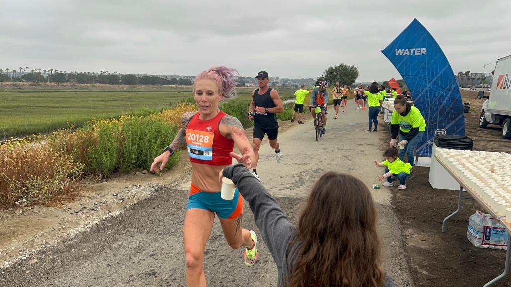 She volunteered at the Rock n Roll San Diego Marathon and Half Marathon which required her to be happy at a very early hour and encourage all the participants to stay hydrated. Later she stated it was awesome!