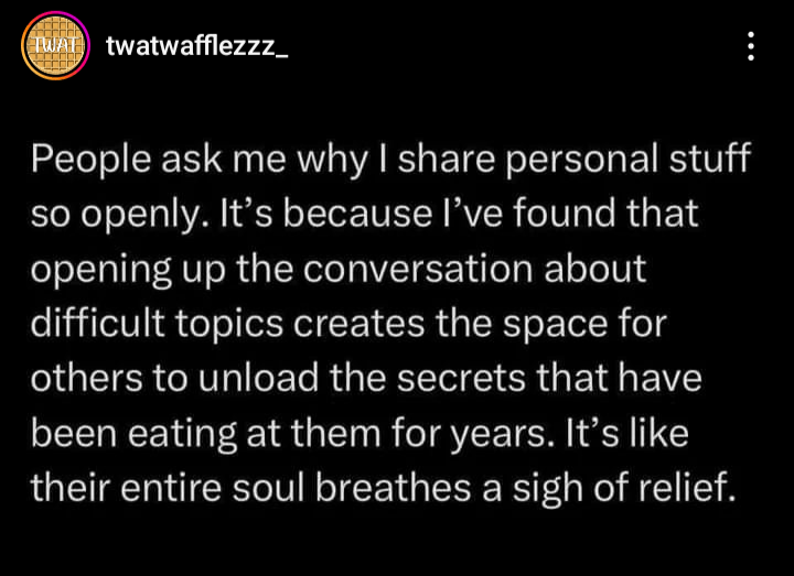 Maybe there’s no question here except why not? I love the ability to share what I’m feeling, going through, have gone through, and all things between because someone, somewhere is dealing with the same. And maybe they’re ashamed or fearful. So I say the hard things only they think about. Occasionally I open my mouth in the wrong forum but I also hope my heart speaks for itself, that my passion shines through, and forgiveness is given freely.