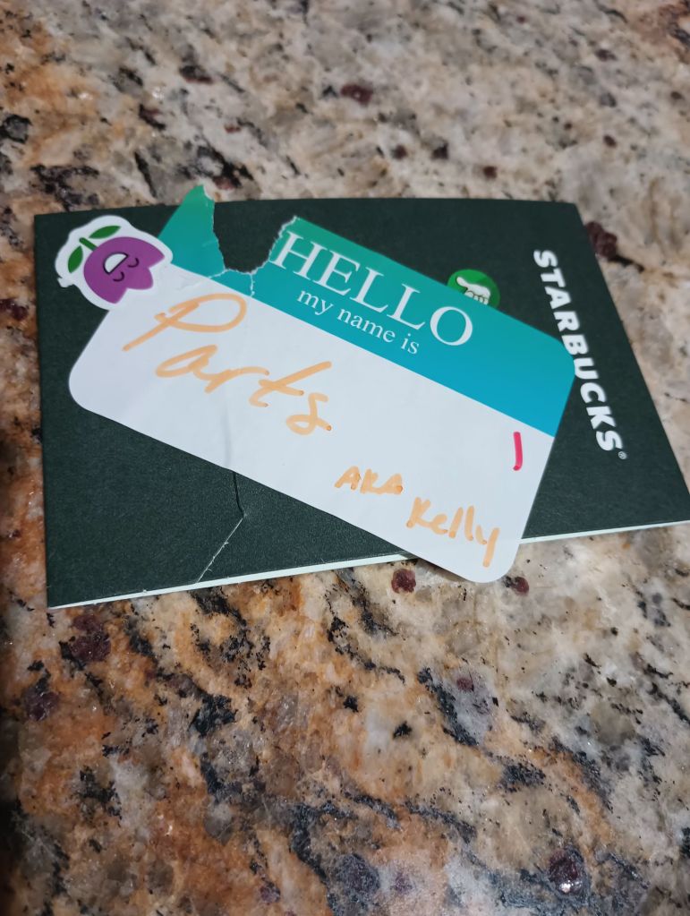 Any Way – focus, will you – I won a Starbucks gift card to fund my coffee and winning habit. Not a bad night. And, of course, my name tag says Parts. And, of course, hers said Spare Parts. Because all we do is laugh together.