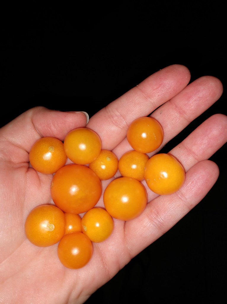 On the topic of salad, these are my final baby tomatoes from the plant we’ve had growing since this time last year. It has survived ice, snow, seasonal changes, and me. Mostly me. I suck at growing anything. I grew a human. Surely that counts!